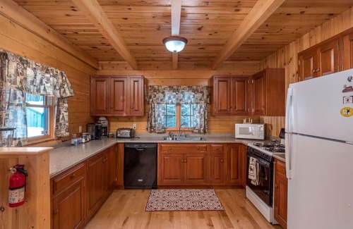 The kitchen is open to the dining room and the oversized TV can be seen from any of these rooms. This is an ideal place to gather at the end of the day and the cozy woodstove will add to the ambiance to your evening.