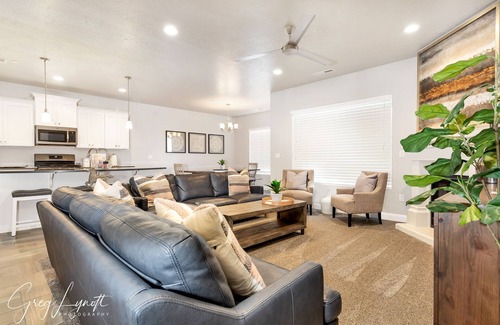 Minutes away from Zion National Park, Sand Hollow State Park and golf course, St. George and numerous trails, parks and outdoor activities, or stay on site and enjoy the beautifully appointed 5 bed, 4-1/2 bath home. Luxurious king beds, TVs in each room, fully equipped kitchen and two great-rooms gives you plenty of space to relax when you're not enjoying the lazy river, workout room, hot tub or pool. Other popular attractions are the amazing St. George Parade of Homes, the famous Tuacahn Center for the Arts, Utah Senior Games, Iron Man, St. George marathon, and numerous amateur sporting tournaments.
