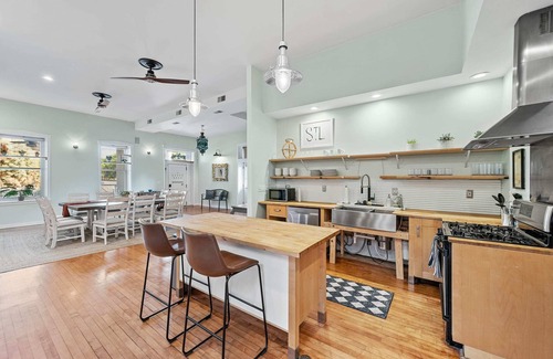 With multiple gathering areas around the home, including two separate kitchens, a gas fire pit in the gated yard, and even a bar and lounge area, our guests love having so much space to enjoy the vacay life. Come experience the best of St. Louis and stay in our unique vacation home.