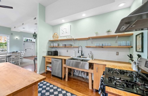 Coffee shops, restaraunts, and bars are all walkable. Street parking is free on Jefferson Street but not necessary as this home's gated driveway can hold 8 vehicles. There is a double parking pad in the alley as well!