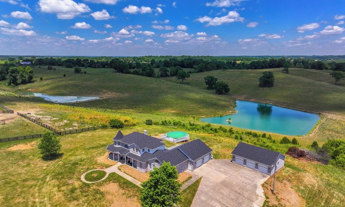 Experience the rustic rural charm of Kentucky when you stay at this beautiful home in Berry. Located on a spacious farm surrounded by rolling hills, this 5-bedroom, 3-bathroom vacation rental makes the perfect place to spend time with family. Spend sunny days by the private pool, playing in the yard, or exploring nearby attractions like the Ark Encounter. In the evening, cook a delicious dinner for the group, then gather around the crackling fire as the sun sets over the surrounding farmland!