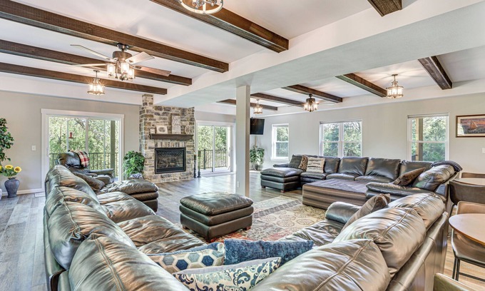 For your next family reunion or corporate retreat, make this spacious villa in Wisconsin Dells your top choice! Located on a riverfront property, this 8-bedroom, 10-bathroom vacation rental offers space for everyone in your group and then some. Take advantage of the home's convenient location near unique attractions you can't find anywhere else. Spend your days on the water or at a local golf course. When you return for the night, grill on the deck or cook in the expansive kitchen!
