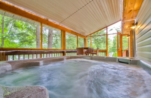 The main house is a luxurious 4 bedroom home that will comfortably accommodate up to 9 people.This cottage features two washrooms one with a full, luxurious 4 piece bath, full modern kitchen, air conditioning, big screen TV with DVD player, full queen size pillow top mattresses with duvets, two large decks one with patio set and one with awning, propane BBQ also it has hut tub at extra cost.