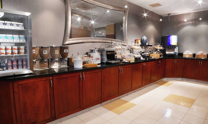 This smoke-free hotel features an indoor pool, a 24-hour fitness center, and a snack bar/deli. Free buffet breakfast is provided, as well as free WiFi in public areas, free self parking, and a free airport shuttle. Additionally, coffee/tea in a common area, a business center, and conference space are onsite.