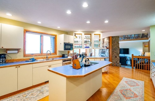 Outdoor living is just as impressive, with a private hot tub, a fire pit, and lake privileges to enhance your stay. Inside, the home features 8 TVs, three wood-burning fireplaces, and a variety of entertainment options like a pool table and foosball. Additional amenities include wireless internet, a Keurig coffee maker, a standard coffee maker, an espresso machine, and a gas grill. Whether you're seeking adventure in the wilderness or relaxation in comfort, this home offers everything you need for an unforgettable mountain escape.