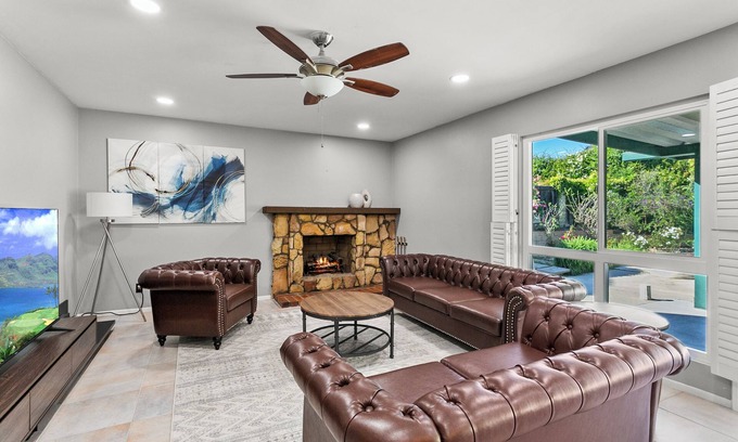 -Expansive Outdoor Oasis: Dive into luxury with your own private pool, surrounded by a beautifully landscaped patio and ample outdoor seating. Perfect for sunny California days and evening gatherings.