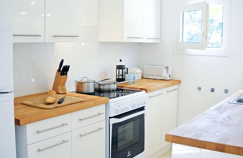 Fully equipped with everything you'd need on holiday from an oven, 4-ring induction hob, microwave, dishwasher, fridge/freezer, blender, through to champagne flutes