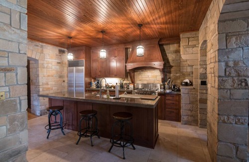 Stay in a real CASTLE! 36 inch stone wall foundation quarried ON SITE! This is truly a one of a kind property to create one of a kind memories! The patio is quite literally in the RIVER! Book your stay now!