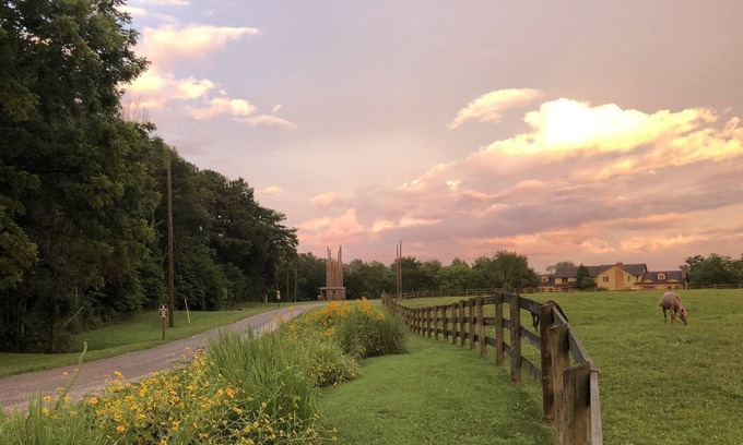 Guests at St. Noel will have their sleeping suite and private bathrooms to themselves, each with a private entrance and lockable door. Each suite has 1 queen bed, 1 full-size bunk, and several twin-size bunks for extra people or kids. The entire building has free WiFi. A large shared front deck has seating for taking in sunsets and views of our horse pastures. The walk-out lower level common area is shared among all guests at St. Noel. There is a quiet reading room with couches and workspace, beverage/snack machines, a large meeting/dining room with seating for up to 30 people, indoor fireplace, long tables, stackable chairs, trash/recycling containers, kitchenette, and a common restroom. The shared kitchenette includes a mini-fridge, sink, microwave, coffee/creamer/sugar and coffee maker, tea and electric tea kettle, ice machine, and toaster. The common outside patio area has a gas and a charcoal BBQ grill, fire pit, and patio chairs. A second fire pit area with benches and picnic tables is a short walk away. Firewood is available for sale. For exclusive use of any of these spaces, contact Ondessonk staff.