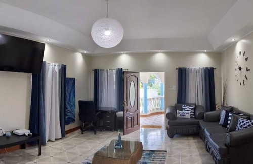 Stay comfortably in St. Thomas Parish at this 3-bedroom house. With 1 king bed and 2 queen beds, guests will have a delightful night's sleep. Enjoy the convenience of WiFi, a washing and drying machine, and AC. The 2 bathrooms feature a shower with a jetted bathtub in the master bathroom, making relaxation superb. We are centrally located in a safe and quiet area close to the beach with modern amenities to include gaming, heated water and office area.