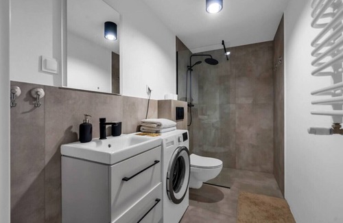 Boasting a prime location, it is just a short distance from notable landmarks such as Stadion Narodowy Metro Station, PGE Warsaw National Stadion, Warszawa Wilenska Shopping Mall, Dworzec Wileński Metro Station, and Dworzec Wschodni Railway station. The cozy 41 m2 space, situated on the -1st floor, graciously accommodates up to four people with a well-appointed bedroom featuring one bed and one sofa. Guests can enjoy the freedom of self-check-in and check-out, along with modern amenities like fast Wi-Fi and a Smart TV. The fully equipped kitchen and bathroom ensure a hassle-free stay, complemented by a thoughtful set of toiletries, towels, coffee, tea, and water. For added convenience, VAT invoices are available upon request.