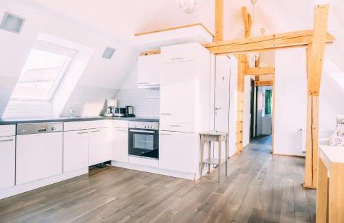 This holiday home is centrally located in the historic old town district of Ravensburg, just a 3-minute walk from Marienplatz Square. It features a kitchenette and a flat-screen TV with satellite channels. Housed in a building featuring a historic façade, Stadthaus Gut Hügle offers comfortable holiday home accommodations. The elegant interiors feature real wood and offer lots of natural light. Kitchen facilities in each apartment can be used to prepare meals. The kitchenette includes an oven, refrigerator, and electric kettle. Guests can enjoy day trips to Friedrichshafen by the Bodensee Lake (13 mi away) and Lindau (22 mi away). Scheffelplatz Square is 2133 feet away, and free public parking is available here (subject to availability). Ravensburg Train Station is 2461 feet away.