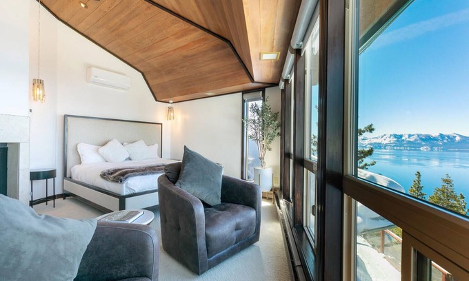 Stairway to Heaven is the ideal home for a classic Tahoe vacation, offering easy access to beaches, shops, restaurants, and the slopes. This beautiful contemporary lake home can accommodate up to 10 guests in 5 bedrooms. Enjoy modern interior spaces, multiple balconies with panoramic mountain and lake views, and formal and casual living areas to entertain and relax.