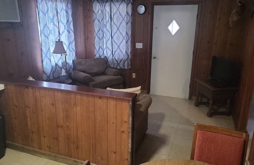 Get out of town! 200,000 acres of public land. Over 60,000 acres of water. This recently renovated cabin strikes a balance between old and new. We updated, cleaned, and freshened it up where necessary and left the rustic wood wherever possible. Clean and comfortable is our highest goal and this cabin will not disappoint. Perfect home base for outdoor adventure. Two twin beds in one room and one full and one twin in the other. This cabin also features a full kitchen. Just across the street from Lake Barkley, the property joins Lake Barkley State Park. Less than a mile from Boots Randolph Golf Course, and five miles from Land Between the Lakes. Small convenience store on site sells Hunt Brothers pizza, deli sandwiches, bait, gas, ice, beer, etc. Tony & Karen (Owners) live on the property and strive to make sure your stay is perfect. Our area offers a wide range of outdoor activities, food, and shopping. We grew up here! We hunt, fish, hike, golf, mountain bike, dirt bike, kayak, and boat. We've been taking our children to The Elk and Bison Prairie, Planetarium, Home Place, Nature Center, Turkey Bay and others for years. We know the area! Our decades of experience will help you plan your next adventure! Pet friendly with a $25 pet fee. NO SMOKING.