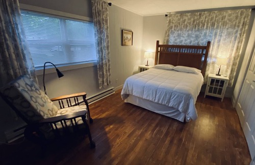 The Earnhart Carriage House is a welcoming space in small village with comfy beds and full kitchen. Within a block, there is a grocery store, bank, post office, and library. We are near a train crossing but this property is listed on another popular booking site with over 100 positive reviews.