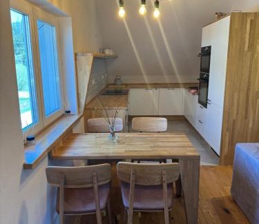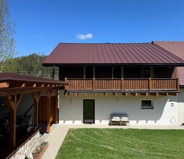 Providing a garden, Starý dom - Apartmán offers accommodations in Oravská Polhora. This property offers access to a balcony, free private parking, and free Wifi. The accommodation provides luggage storage space and a tour desk for guests. Featuring a terrace and garden views, the spacious apartment includes 1 bedroom, a living room, cable flat-screen TV, an equipped kitchen, and 1 bathroom with a bath and a shower. Towels and bed linen are available in the apartment. The property has an outdoor dining area. There is an on-site bar. For guests with children, the apartment features outdoor play equipment. Guests can also warm up near the outdoor fireplace after a day of skiing. Orava Castle is 25 miles from Starý dom - Apartmán, while Hala Miziowa is 6.5 miles from the property.