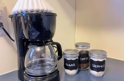 Mobile home with 2 bedrooms each with Queen beds in them, living room area with a couch that rolls out to a Queen bed, 2 chairs and a coffee table, full kitchen with table and chairs, refrigerator, stove/oven, microwave, coffee maker with coffee, cream & sugar. Washer and dryer in the hallway. Newly remodeled throughout, one bathroom with shower and tub.