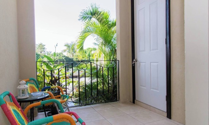 The vacation accommodation is surrounded by lush and beautiful landscaping and garden, star apple tree at the rear of building and sufficient parking. Enjoy the swimming pool or chill by the pool house.
