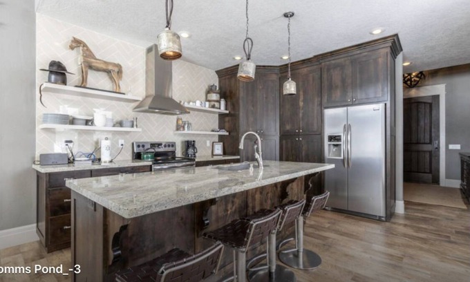 Gorgeous multi-level home in Smoot, WY. +3200 sq ft of high end finished living space throughout. Well cared for lawn with a shared pond for fishing and other water sport activities. Canoe, paddle boards, and life jackets are on site. Large fire pit, propane grill, and everything you need for cooking and dining inside or outside. Johnny Miller designed 18 hole golf course and Afton municipal airport located 10 miles north.