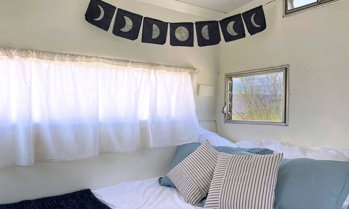 Nestled within Terlingua Ranch, this 5 acre property and Blue Moon, the remodeled Aristocrat trailer, enjoys dramatic vistas and a most pristine environment. Thoughtfully crafted for those wishing to disconnect from a busy life, Blue Moon encourages a quiet and immersive experience of the desert. Sunrises and sunsets and outdoor cooking under the milky way. Everything you need for a magical off-grid retreat!