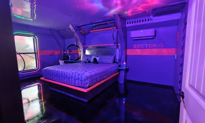 Drift off in a spaceship-themed king-size bed, surrounded by glowing panels, ambient lights, and subtle tech detailing that makes you feel like you’re en route to Alpha Centauri. The control consoles don’t actually control anything (we think), but the vibes are interstellar.