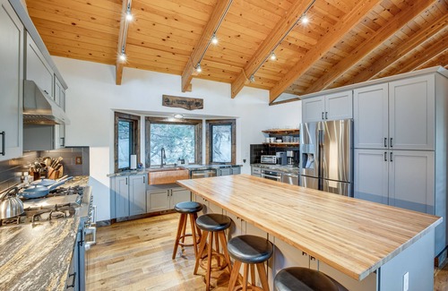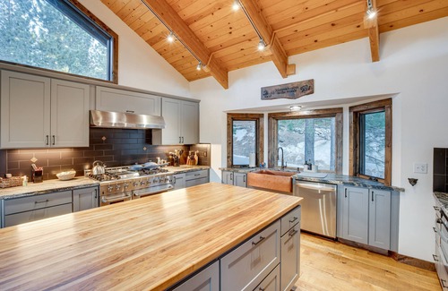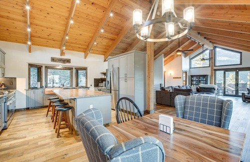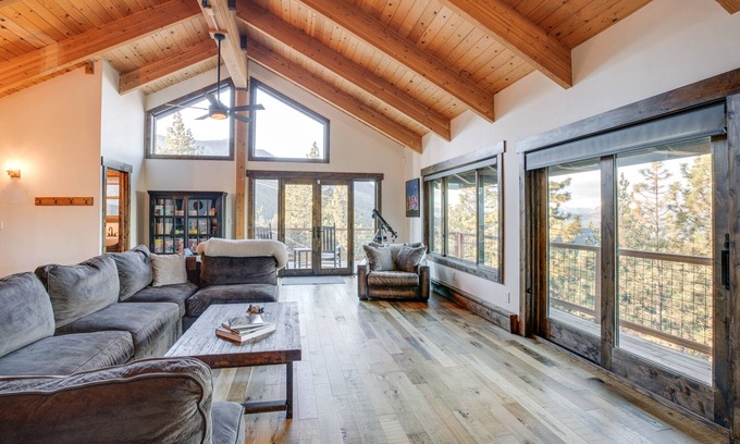Immerse yourself in the stunning scenery and mountainside bliss of Lake Tahoe with a stay at this 4-bedroom, 3.5-bath vacation rental in Stateline, NV! This cozy cabin getaway offers sweeping views from the 2 decks, lots of family-friendly games, and easy access to everything from hiking trails to local shops. Hit the ski slopes in the winter and in the summer, enjoy the lake and beach — just minutes away! At sunset, cozy up by the fireplace while the pine trees peek through the picture windows.