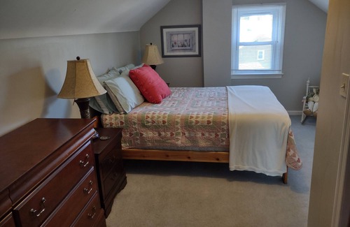 Main bedroom has a queen size bed and is located on the first floor. There are two full size beds and one twin bed in 3 other bedrooms. Two bedrooms are on the first floor and two are on the second floor. We offer excellent bedding with high quality sheets, extra pillows, and blankets.