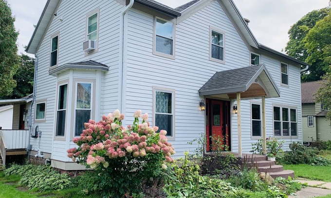 This stately 3000 sq ft home is perfect for a large group or family. Located on a tree lined avenue, steps from Washburn's Main Street and Lake Superior. Enjoy Bayfield County, which has year round appeal for the outdoor adventurist, or stay in and relax by the fire. House has high ceilings, original wood floors and trim. Built in 1912 by a prominent lumber baron, the home has been well cared for and updated with a newly remodeled kitchen. There are 4 bedrooms and 3 bathrooms. House is situated on a double lot with a two stall garage. Fenced in backyard has a deck, grill, fire pit and volleyball net. Your well behaved dog is welcome for a $60 fee. Neighborhood playground, tennis and pickleball courts just blocks away. In summer, visit the Farmer's Market and enjoy Music In The Park on Wednesdays. The house is elegant enough for a romantic weekend, yet still comfortable and inviting for families and outdoor sports enthusiasts. Washburn was recently named one of the best places for biking in the country! Bring your bike, or rent one at Washburn Hardware and Sports. Washburn Marina is .5 miles away and is a certified Clean Marina. We have found visitors are pleasantly surprised by all Bayfield County has to offer, and strive to turn your stay into an annual tradition. We welcome your questions and suggestions! Find us on Facebook at The Baron on 4th Street.