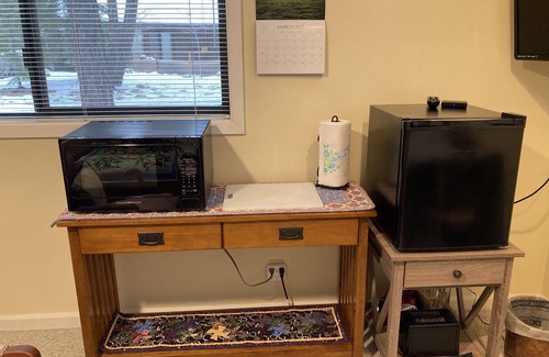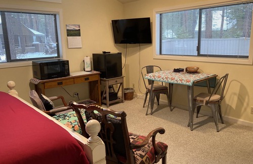 Rejuvenate your mind, body & soul at Black Butte Ranch in Central Oregon. As you enter the peace and tranquility of Black Butte Ranch, you will experience the magic of seasonal change. When the snow arrives, the mountain spirits are on display. The 1800-acre Ranch lends itself to many wintertime activities such as XC skiing, snowshoeing, snow tubing, and close proximity to Mt. Bachelor and Hoodoo Ski Area. During the summer Central Oregon is a perfect playground to walk, bike, hike, swim, fish, kayak, golf, relax, refresh, and repeat. Reservations at Kramer's Korner Private Suite include access to all Black Butte Ranch amenities... hot tubs, steam rooms, saunas, pools, exercise rooms, bike paths, walking trails and playgrounds. This mini retreat is a perfect place for a peaceful escape from everyday life any time of year. The Private Suite is located on a quiet cul-de-sac with beautiful views of the snowcapped Cascade Mountains. A new favorite activity, Stargazing, reveals the brilliance of BBR's incredible night sky. Photography and painting are at their best when viewing the awe-inspiring natural beauty of this unparalleled mountain backdrop. Wine tasting, enjoying local cuisine and music, as well as annual festivals are favorite activities at BBR and in Sisters. A small deck, well equipped kitchenette, large bathroom, well designed sleeping and sitting area as well as a private locking entrance are available for your use when you stay at Kramer's Korner Private Suite.