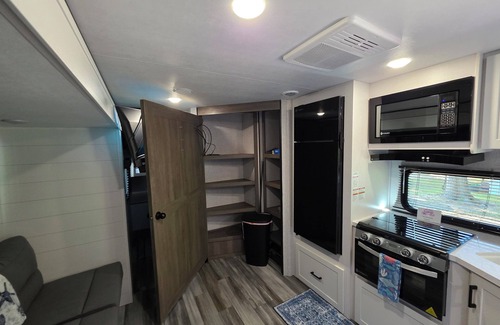 This 1-bedroom Camper in Perry is perfect for your escape. With heating, WiFi, and AC, guests can relax in the charming living room with a bunk bed. Enjoy this cozy retreat. Its ideal for a peaceful getaway.
