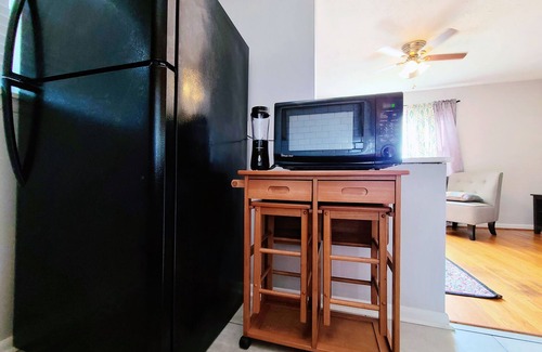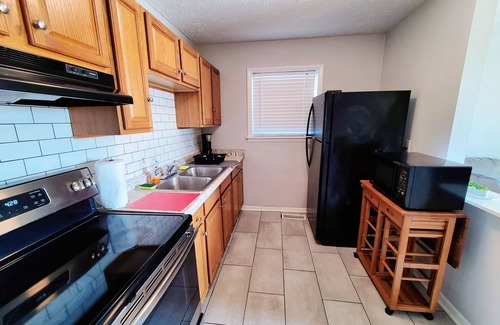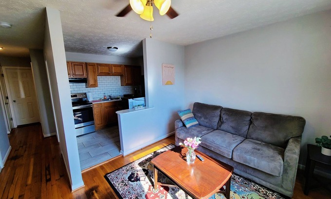 The apartment building is located in a well-lit and safe area with exterior doors that stay locked. Avoid expensive parking near campus/downtown by utilizing the off-street parking spaces provided behind the building for guests only. One space per apartment. A few minutes walk will put you at the nearest bus stop where you can utilize public transportation to traverse across Lexington. When it's time to drive out to explore all the scenic and beautiful locations across Kentucky like the Gorge or Mammoth Cave, your vehicle will be waiting for you there safely. Don't forget to explore the Bourbon Trail during your stay! Once you're ready to relax and unwind, you'll find that the apartment is equipped with all the conveniences you need to recharge in comfort. A large flat screen smart TV is there for your convenience. Utilize your favorite streaming services to catch up on your favorite programs while lounging on the couch. Rest easy knowing that each apartment has adjustable AC/heat and each room is equipped with blackout shades and a box fan which is useful for white noise. Night owls and early risers will also appreciate the coffee maker located in the full kitchen. Whether you plan to eat out and dine at local restaurants or prepare your own meals, you'll be set during your stay. It would be our pleasure to provide any recommendations and tips during your stay. Feel free to reach out to us anytime!