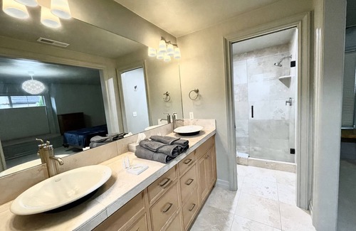 Stocked kitchen with stainless steel appliances and marble countertops. Large capacity washer and dryer. In quiet cal-de-sac close to Eugene airport and downtown. TV with free Netflix. High speed internet, office nook and desks in two bedrooms. Easily available free on-street parking and access to bus.