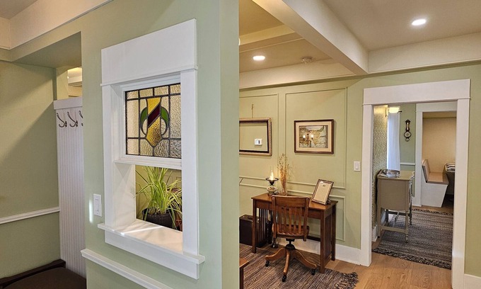 A gorgeous home from the Arts and Crafts era, built 100 years ago, crafted with hardwood floors, stained glass, and a clawfoot tub. Vintage furniture and thoughtfully curated period decor, but with modern conveniences you'd expect like smart tv's in each bedroom and fiber optic WIFI. Bake a cake, or host a dinner party using the home's well appointed kitchen. Spacious bedrooms feature new queen sized beds and plenty of fresh linens and towels. When the weather is nice, stroll in the garden or have a bbq and relax on the outdoor patio.