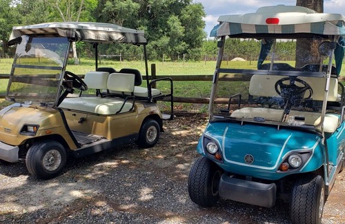 View gentle rolling hills with a spring fed pond. Large area to interact with my horses. Witness the beautiful sunrises and sunsets. Brilliant constellations and sooo many stars. Plenty of parking & you get your own personal parking space. You will have your own personal golf cart to carry you to the Tiny home. Fire pit, gas grill, & plenty of seating outside.