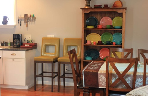 A gem among area lodging options, the Bistro Apt is a beautifully renovated downtown residence that overlooks Elm Street. The space is very warm and inviting thanks to generous amounts of natural light and the eclectic furnishings throughout. Guests can enjoy a large entertainment area, large open design kitchen, two bedrooms, an office space with a futon for additional sleeping space, and two full bathrooms – perfect for a single family or small gathering. Enjoy all of the wonderful offerings of Three Oaks including: cafes, restaurants, theaters and shops are all outside your door!