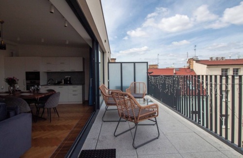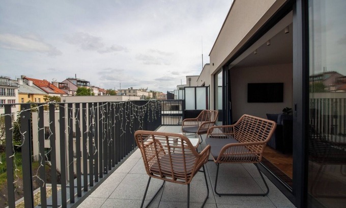 Stay Inn | Penthouse Feel: 3BR w/A/C, Terrace is located in Zizkov. Stay Inn | Penthouse Feel: 3BR w/A/C, Terrace provides accommodation, featuring Air Conditioner, Wheelchair Accessible, Balcony/Terrace, among other amenities. This Apartment features Air Conditioner, Wheelchair Accessible, Balcony/Terrace, to make your stay a comfortable one.