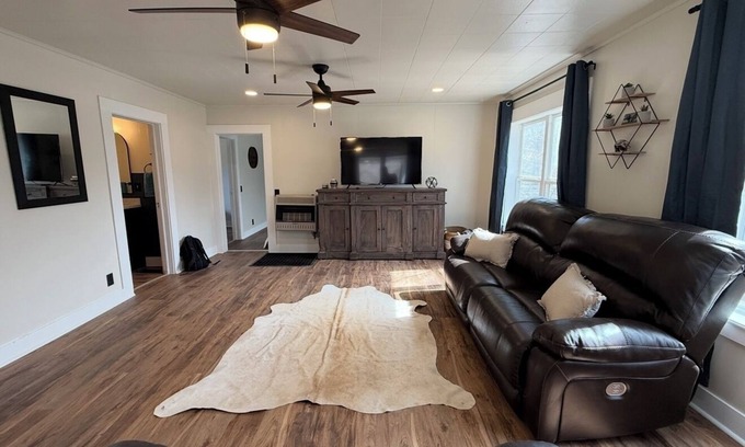 Have fun with the whole family at my updated vacation home! Located on Main Street, just a hop/ Skip from Eminence's businesses. This spacious home has 3 queen beds in 3 bedrooms, TVs in each room, and a built-in bunk with 2 Nuggets for the kids to sleep or play on. Sleeps up to 7 adults, plus extra space for kids in the bunks! Fully equipped for your weekend getaway or week-long stay!