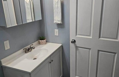 Main-floor 2 bedroom unit ideal for traveling pros or 2 couples. Two king memory-foam bedrooms flank a central kitchen/living area; one full bath. Shared on-site laundry (unfinished basement) Ample off-street parking, room for large vehicles. Walk to bars and restaurants. LaPorte Hospital 3 min; Dunes Volleyball Club 2 min; Amazon site 15-20 min.