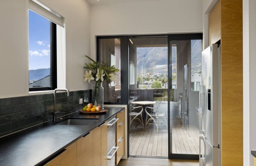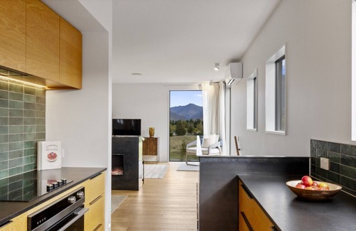 Positioned to capture breath-taking mountain scenery, including Coronet Peak and surrounding mountains, this Queenstown holiday home includes fresh and modern open plan living. Cosy up indoors with a fireplace and heat pump in the cooler months for toasty winter warmth, or unwind on the deck and private reserve for al-fresco summers and soak up the tranquil mountain views.