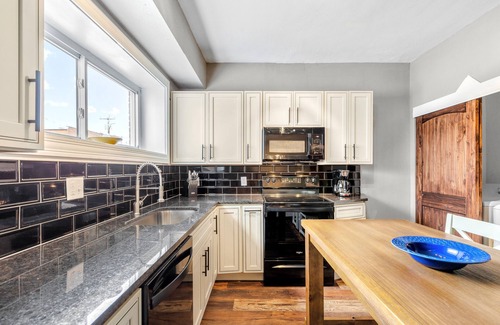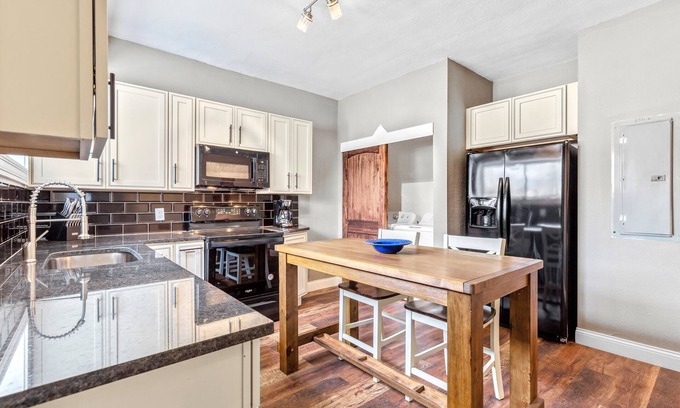 ★ Kitchen: stainless steel appliances and fully stocked with essential cookware, dishes & glassware along with a two-seater table