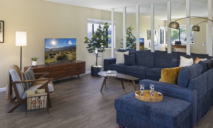 Additional amenities include an in-unit washer and dryer, a communal pool just steps away, and breathtaking mountain vistas that create a serene backdrop for your stay. Located close to downtown Palm Springs, you'll have easy access to world-class dining, shopping, and entertainment.
