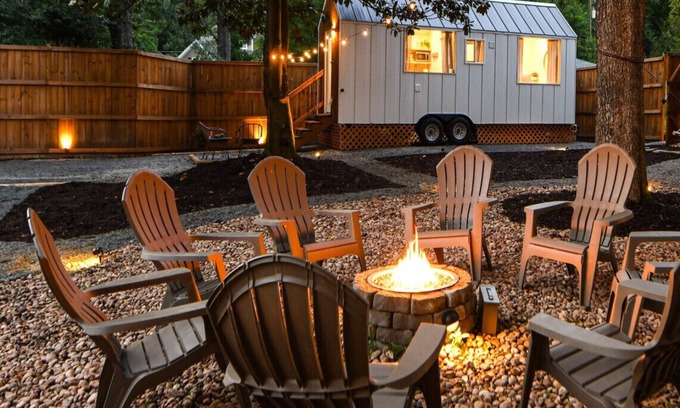You will have your own private entrance through our fence to access the Magnolia Mini, and a shared pedestrian gate in the backyard that gives you direct access to downtown Norcross. Backyard space—including a natural gas fire pit and hammock—is shared with guests from our 2 other rental units on the property and is the only shared space on the property. You will have your own, private outdoor seating area at the front entrance of the tiny house.