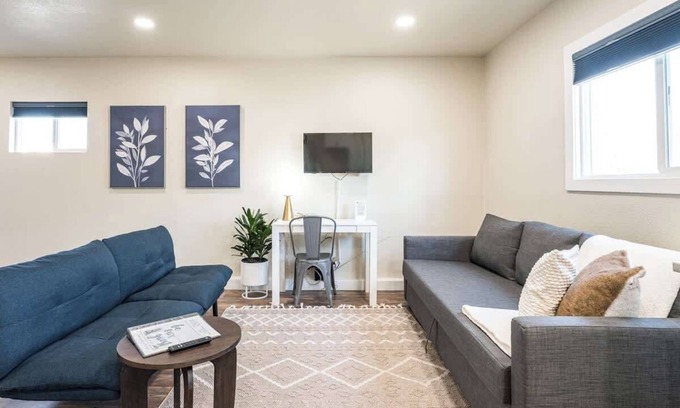 #StayinMyDistrict Central Bench! This renovated private studio offers a prime location near restaurants, shopping, and Hillcrest Country Club. Downtown Boise is just 2 miles away, with Boise State University 1.5 miles and the Boise Greenbelt nearby for outdoor adventures. Boise Airport is only 3 miles away, and Bogus Basin Ski Resort is 16 miles for year-round recreation. The spacious studio features a private entrance, comfortable furnishings, a kitchenette, WiFi, and a Smart TV. Sleeps up to 5. FREE parking for a convenient and relaxing stay!