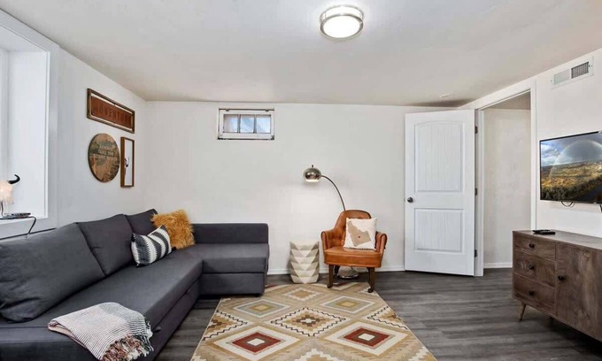 #StayinMyDistrict Twin Falls Pendleton Chic Suite! Convenient to Downtown, College of Southern Idaho, local shopping & dining. There are a variety of restaurants, pubs, coffee shops, grocery and a convenience store within 5 blocks of the property. This remodeled basement apartment has everything you need for a comfortable stay. Modern updates mixed with some rustic & Pendleton inspired decor. Approx. 500 ft.² featuring King bedroom, 1 full bath, & comfortable living area with chaise couch that pulls out to full sleeper. Hardwood and fresh paint throughout give the apartment a clean contemporary feel. Tons of amenities and stylish design choices, made with guests comfort in mind, make this private retreat a great home away from HOME!