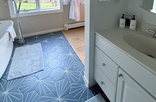 - The Steeple Hill Flats offers two modern suites nestled into the Bayfield hillside overlooking downtown and the breathtaking Lake Superior. Both the Superior Flat and Lower Flat feature Southeast facing windows with gorgeous views and walkout to private decks. The entire interior recently received a full facelift and was completely renovated with upgraded, state-of-the-art materials including engineered wood flooring and fully tiled bathrooms. Enjoy the brand-new, oversized soaking tubs that give both of these spaces a relaxing, luxurious feel.