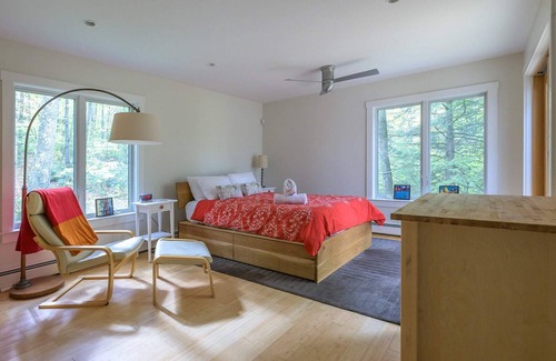 The opportunities to unplug and forest bathe are endless at this special retreat. A full wall of windows overlook woods and wetlands where any number of birds and other fauna may be spotted, and the screened porch welcomes a full three seasons of respite, situated to catch Summer breezes; with a fireplace to keep cozy in the Fall. Modern, bright, well-appointed, and stocked with games, Steepletop Lodge is a special place to reconnect with both nature and your loved ones!