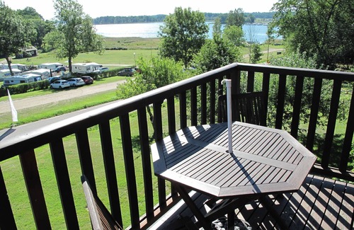 "Stegeborg Norrkrog", 3-room apartment 75 m2 on 1st floor. Practical and wooden furniture furnishings: upper floor: living room with open-hearth fireplace and satellite TV. 1 room with 3 beds. 1 room with 1 double bed. Kitchen (oven, 4 ceramic glass hob hotplates, kettle, microwave, freezer, electric coffee machine) with dining table. Shower/WC. Electric heating. Wooden floors. Balcony. Balcony furniture, barbecue (portable). Beautiful view of the sea. Facilities: iron, baby cot. Please note: non-smoking house. Private entrance, smoke alarm, fire extinguisher. Freezer approx. 200 l.