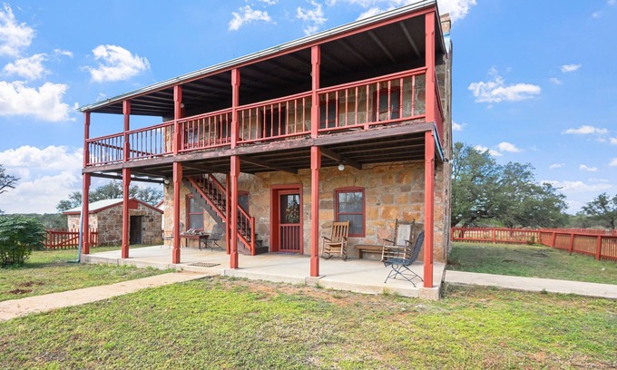 Escape into the true untouched beauty of the Texas Hill Country at Steinhaus Ranch. Steinhaus Ranch, which is German for Stone House, is a restored German Ranch House in the Texas Hill Country between Castell and Llano, Castell is home to a digital recording and video studio, writers, artists and progressive German descendants. It features several historic buildings, old churches, cemeteries, Llano River views, the Castell General Store, a Post Office and Community Club. A person can come here, relax, fish, kayak, make music and just enjoy the peace and quiet. From Steinhaus Ranch you travel 1 mile to CR 103 to enjoy the swimming hole and do some fishing .The home is big enough for the whole Family to have a reunion, Corporate retreat, wedding venue, a girl or guys weekend away to enjoy whatever you fancy. Come, be our guest at Steinhaus Ranch. This is the place to retreat and reconnect with family and friends. The Main home sleeps 11 comfortably and children are welcome. Listed rate is for an occupancy of 11 people. It’s the perfect mix of vintage style and modern conveniences.