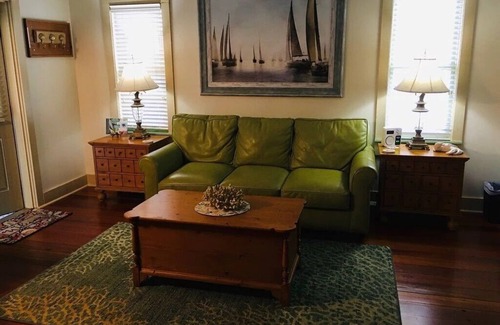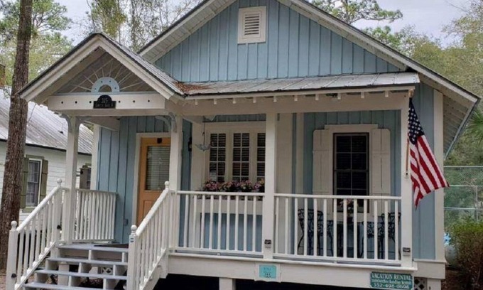 Your romantic getaway for 2 begins at this quaint 1-bath vacation rental studio boasting a double-sided electric fireplace, a jetted soaking tub, and an outdoor patio. This cottage features flat-screen cable TV, wall-mounted stereo system, DVD player, dining table, hardwood floors and a bidet in bathroom. The kitchen is fully equipped with a refrigerator w/ ice dispenser & water filter, microwave, coffee maker, toaster, dishware/flatware, deep stainless steel sink w/ goose-neck faucet. Free WI-Fi, linens/towels, A/C & heating, complimentary toiletries, ceiling fan, hairdryer and GE large capacity stack-able washer/dryer duo make this cottage the perfect getaway destination. Outdoor patio with dining table and charcoal grill. No smoking. Dog-friendly with deposit. Enjoy relaxing days by the community pool, exploring scenic trails in the state parks, or a kayak trip on the Steinhatchee River - the adventures are limitless!