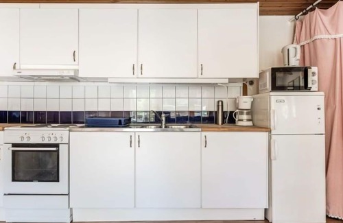 "Stenfors", 2-room house 38 m2. Cosy furnishings: living/sleeping room with 1 double sofabed, dining table, satellite TV and hi-fi system. Exit to the terrace. 1 room with 2 beds. Open kitchen (4 hot plates, oven, toaster, kettle, microwave, freezer, electric coffee machine). Shower/WC. Electric heating. Facilities: washing machine. Internet (WiFi, free). Please note: non-smokers only. Freezer approx. 120 l.